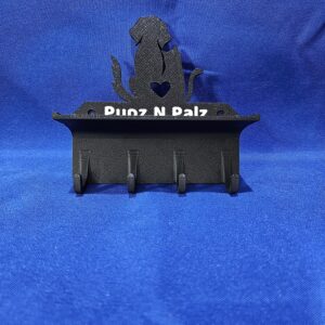Finished in black with bold raised white lettering that reads Pupz N Palz. The smaller size fits comfortably in any space—perfect for apartments, entryways, or office walls. Designed to hold essentials like leashes, keys, or collars while showing support for local animal rescue.