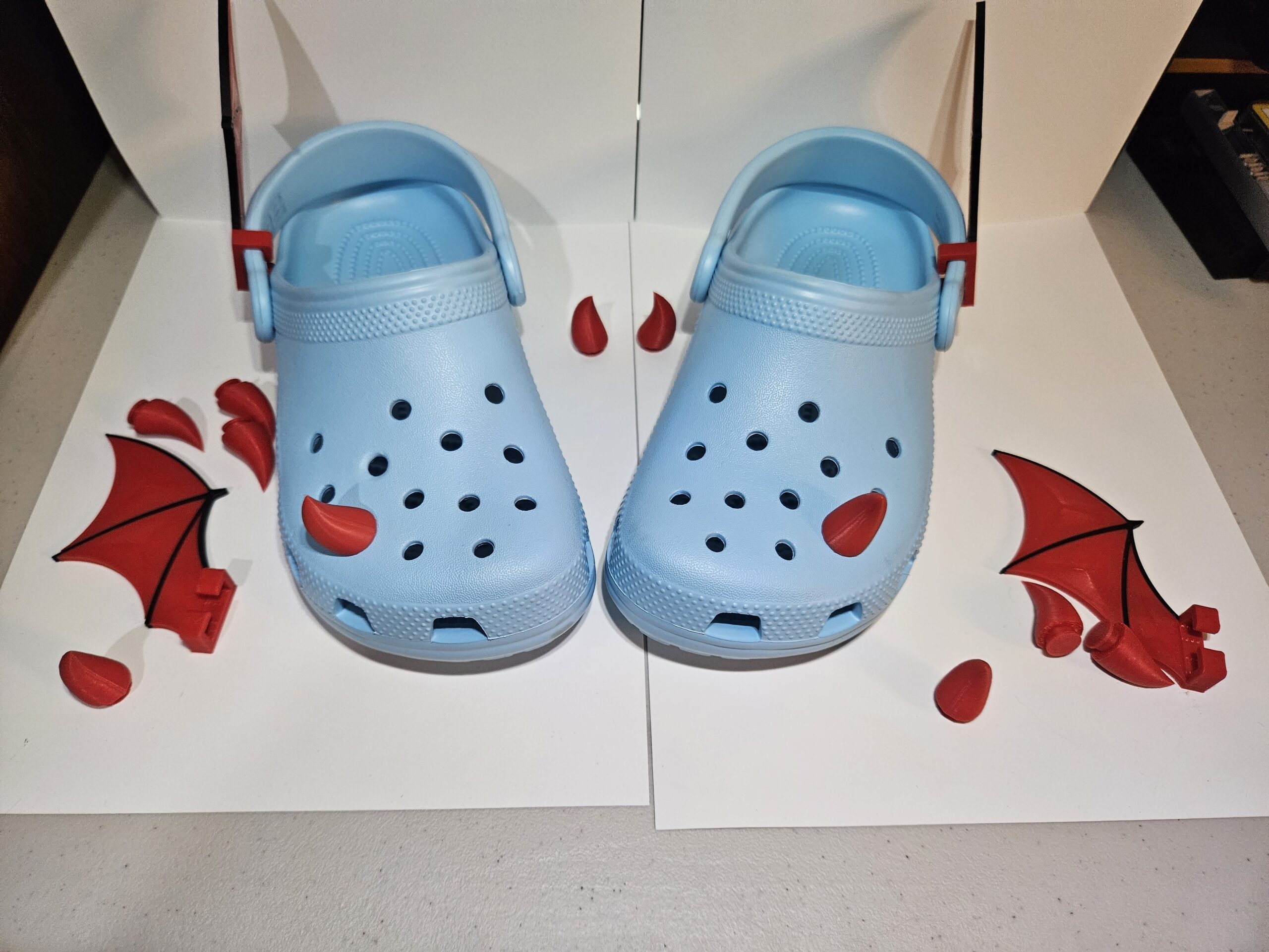 Red Horns and Wings Croc Charms simply pop these into the holes of your Crocs and watch as your shoes take on a whole new personality. Perfect for Halloween, costume parties, or just adding a bit of flair to your everyday style. Get your hands on these devilish Croc Charm Jibbitz now and let your inner demon shine!